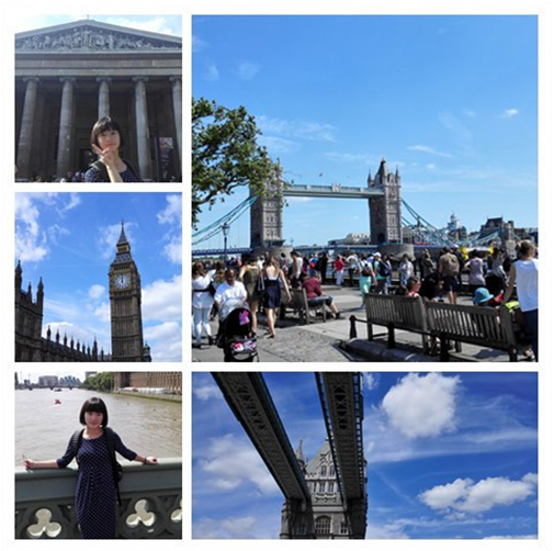 第一天 飞机降落在伦敦希斯罗机场时,已经是伦敦时间傍晚六点多了。机场的落地窗外,多多少少带些梦想意味的机翼映衬着伦敦布满夕阳的天空。对方学校的老师乘着红色巴士到机场来接我们。车上有几个四人桌,我们喝着果汁,吃着饼干,听着老师的介绍:英国的夏天,不到九点半日不落,所以在接下来的旅程中,可以尽情欣赏夕阳下的英国乡村。十几个小时的飞机让大家在车上昏昏欲睡,匆匆瞥了几眼就睡着了。醒来已到我们的宾馆Travelodge,两层楼的宾馆并不大,但是很新很干净。