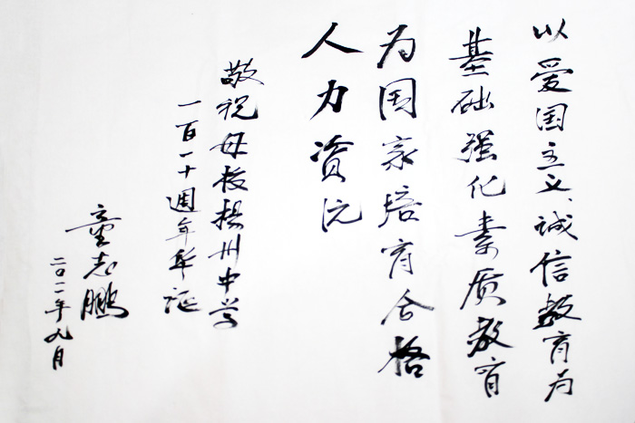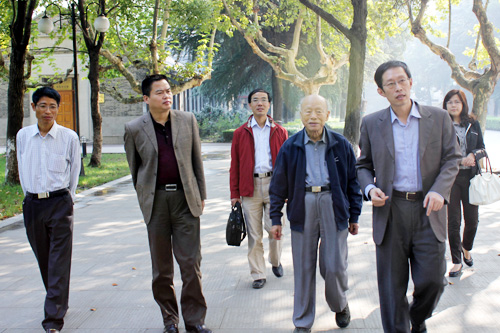 童志鹏院士访问母校 2011年9月24日童志鹏院士回母校扬州中学访问,卫刚校长等陪同参观了树人堂校史馆和校园,童志鹏院士还在综合楼报告厅为高二学生做报告,并与学生进行了热烈的互动。 童志鹏院士1942年毕业于上海扬州中学,后考入上海交通大学,1950年获美国威斯康辛大学博士学位。1997年当选为中国工程院院士,是我国军事电子高新技术开拓者、奠基者与带头人之一,获国家多种奖励。 在校史陈列馆,童院士对扬州中学110年来的办学成绩赞不绝口。看到扬中历史上曾用过的《范氏大代数》时,他激动地说:“我们就是用的这个课本,是英文原版,用英文原版书上课为将来从事研究打下了坚实的基础。”卫校长说:“去年江主席访问母校时,说跟您‘过从甚密’。”童院士说:“在交大读书时候,虽不是同届,但一起做过实验,他担任电子工业部部长时,一眼就认出了我,之后江主席经常把我接到中南海聊天叙旧。他说,我们都是扬州中学毕业的,只不过一个在扬州,一个在上海。”随后,童院士为母校欣然题词:“以爱国主义、诚信教育为基础,强化素质教育,为国家培育合格人力资源。”他是这样解释“合格”两个字的:近年来我国的科技迅猛发展,但是自主研发的高端产品很少,国家迫切需要高素质劳动者、专门人才和拔尖创新人才,中学阶段主要任务是培养学生的综合素质,尤其是创新素质,为他们选择不同的成才之路做准备。 在综合楼报告厅,童院士为高二学生讲述了自己的学习工作历程,提到在上海扬州中学学习的情景,老人饱含深情地说:“70年后能与母校、校友见面我感到特别高兴和兴奋,我对扬中老师的印象是要求严格,但是很亲切。上学习期间,我特别喜欢文学、数学和外语,读了大量书籍包括英文的,古文的。那段时光让我始终怀念、终身受益!” 在交流互动时间里,同学们争先恐后地提问,问题涉及如何在苦难面前保持自信,如何确定近几年的人生规划,中学生如何培养创新能力,如何看待科技这把双刃剑,如何把握学习中的博与精,如何应对变幻莫测的国际形势等方方面面,童院士认真倾听着每一个问题,不断夸赞学子旺盛的求知欲和高度的社会责任感,耐心回答着每一个问题。 童院士告诉大家,“面对困难,我们首先有精神准备——困难不可避免,困难意味着你在进步,只要把基础打好,不断丰富知识,就会克服困难,不断前进!”“每个人爱好不同,面临的机遇不同,人生方向也就不同,但是只要我们学好基础知识,并有自我教育的意识,不管选择什么方向,不断知识更新多么快,都能够用基础知识这把钥匙成功开启新知识的大门。”“在应试教育背景下,除了社会学校想办法外,同学们自身一定要树立创新意识,养成独立思考的习惯。” “从事科学研究,首先要心中有正义,要看待事物的积极方面,不要悲观,要相信我们有能力解决问题。”“做人要乐观,要不断提升个人精神境界,要把握对立统一规律、全面看待问题;做事要将自己的事业跟祖国的需要结合起来,要注意知识与广度与精度的统一。”在一个多小时的交流中,87岁高龄的童院士思维清晰,态度真诚,话语中充满着关爱和鼓励,给人以催人奋进的力量。 卫校长勉励同学们以童院士为榜样,发奋学习,持之以恒,成为新一代创新拔尖人才,成为社会主义事业的建设者和接班人,为早日实现中华民族的伟大复兴而奋斗,并祝童院士健康长寿。 童院士此次回母校和同学们面对面交流,不仅表达了老一辈校友对母校和年轻校友的殷切期望,更是传递着历届扬中人所具有的民族责任感和使命感。