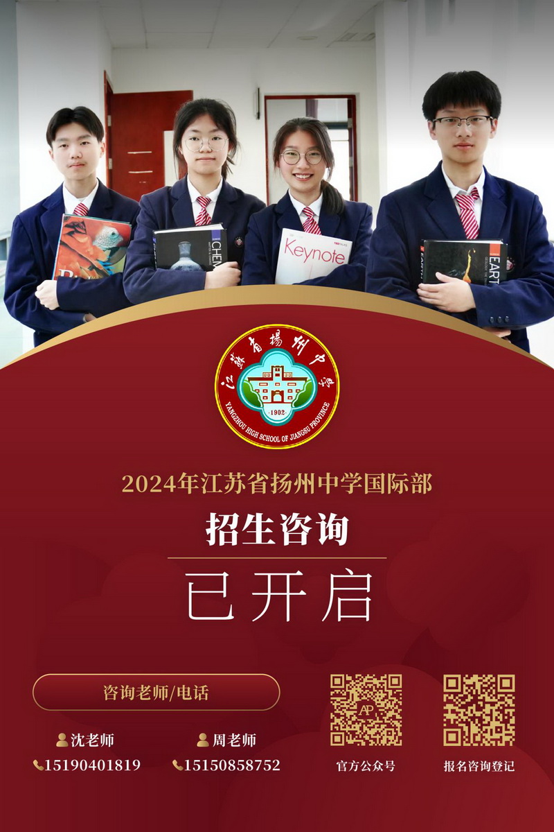 高瞻全球,成就英才。扬州中学国际班15年的专注,助您实现梦想,开启人生辉煌!