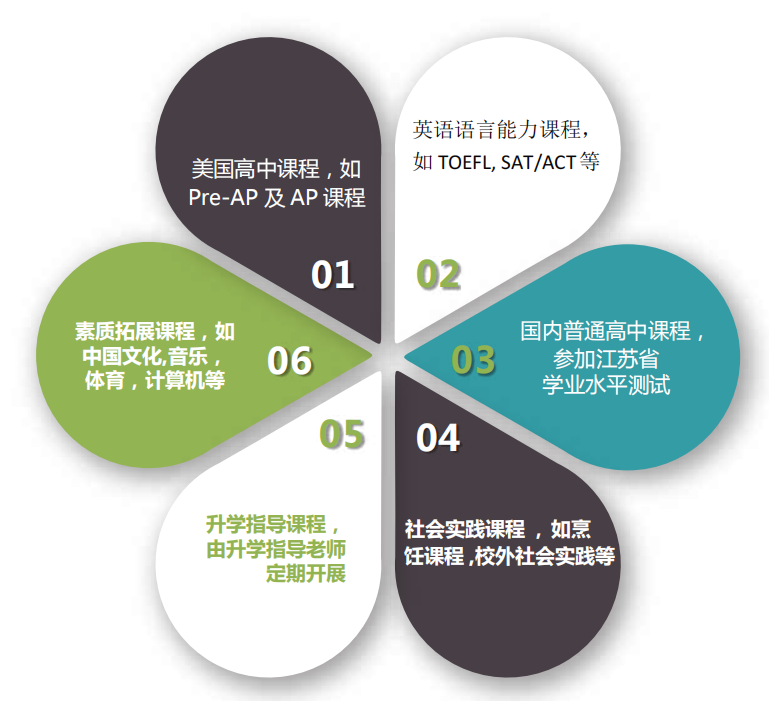 国际课程丰富多彩扬州中学国际班采用小班化教学,确保每位同学都能获得充分的个性化指导。AP课程设置丰富,采用双语授课,统考成绩遥遥领先于全球平均水平;英语语言能力课程实行分层化教学,因材施教;国内学业水平测试课程为学生解决后顾之忧;升学指导老师全程指导,助力学生申请国外名校。学校注重学生的素质拓展和社会实践,定期开展烹饪、烘焙等课程。