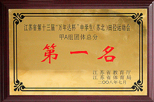 <P>江苏省第13届中学生田径比赛于<?xml:namespace prefix = st1 ns = "urn:schemas-microsoft-com:office:smarttags" /><st1:chsdate w:st="on" IsROCDate="False" IsLunarDate="False" Day="28" Month="7" Year="2008">7月28日</st1:chsdate>—31日在江苏省灌南县举行。我校田径高水平运动队在34支参赛队中,力挫群雄,以绝对优势,一举获得了甲A甲B两个组别的总冠军,团体总分分列所有参赛队之首,同时我校还获得“体育道德风尚奖”。</P> <P align=center> </P> <P align=center><IMG onmousewheel="return bbimg(this)" alt="" hspace=0 src="$/History/main/Article/Uploadfiles/200808/20080830142450948.jpg" onload=resizepic(this) border=0></P> <P align=center> </P> <P align=center><IMG onmousewheel="return bbimg(this)" alt="" hspace=0 src="$/History/main/Article/Uploadfiles/200808/20080830142450686.jpg" onload=resizepic(this) border=0></P>