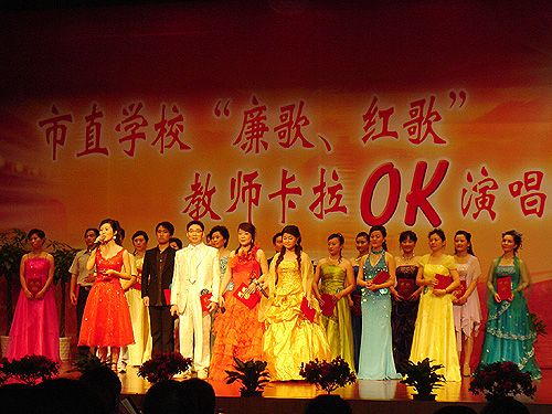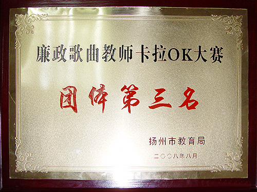 <P>日前在由教育局举办的市直中学廉歌、红歌教师卡拉OK演唱比赛中,我校派出顾丹丹、纪祝华、赵飞雪三位老师参赛,他们实力不凡在参赛的53位选手中表现出色,获得了团体第三名的好成绩。<?xml:namespace prefix = st1 ns = "urn:schemas-microsoft-com:office:smarttags" /><st1:PersonName w:st="on" ProductID="纪祝华">纪祝华</st1:PersonName>老师<st1:PersonName w:st="on" ProductID="和赵飞雪">和赵飞雪</st1:PersonName>老师还分别获得了个人一等奖和三等奖。</P> <P align=center><IMG onmousewheel="return bbimg(this)" alt="" hspace=0 src="$/History/main/Article/Uploadfiles/200809/20080901105513974.jpg" onload=resizepic(this) border=0> <IMG onmousewheel="return bbimg(this)" alt="" hspace=0 src="$/History/main/Article/Uploadfiles/200809/20080901105513787.jpg" onload=resizepic(this) border=0><BR><BR><IMG onmousewheel="return bbimg(this)" alt="" hspace=0 src="$/History/main/Article/Uploadfiles/200809/20080901105513474.jpg" onload=resizepic(this) border=0> <IMG onmousewheel="return bbimg(this)" alt="" hspace=0 src="$/History/main/Article/Uploadfiles/200809/20080901105513662.jpg" onload=resizepic(this) border=0><BR><BR></P>