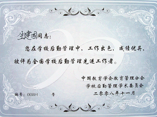 <P>近日,我校在2008年中国教育学会管理分会年会暨学会20周年会庆上,我校被评为全国后勤管理先进单位,生建国主任被评为全国学校后勤管理先进工作者。</P> <P align=center><IMG onmousewheel="return bbimg(this)" alt="" hspace=0 src="$/History/main/Article/Uploadfiles/200811/20081125113552178.jpg" onload=resizepic(this) border=0> <IMG onmousewheel="return bbimg(this)" alt="" hspace=0 src="$/History/main/Article/Uploadfiles/200811/20081125113552491.jpg" onload=resizepic(this) border=0><BR><BR></P>