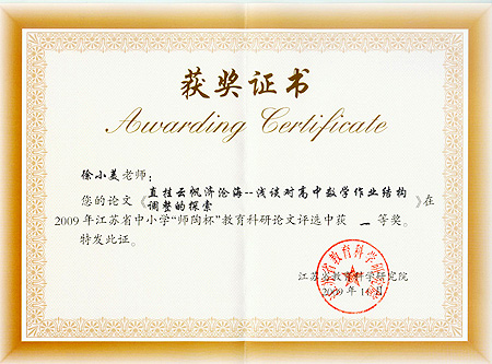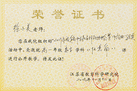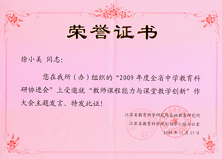 <P>2009年度全省中学教育科研协进会暨“师陶杯”活动颁奖仪式在丹阳市六中隆重举行,我校朱如忠、蒋念祖、徐小美老师获得省“师陶杯”论文一等奖,并受邀参加了颁奖仪式。王舒成、吴新雷、张小兰等获得二等奖,武银根等9人获得三等奖。</P> <P align=center><IMG onmousewheel="return bbimg(this)" alt="" hspace=0 src="$/History/main/Article/Uploadfiles/200912/20091201143952277.jpg" onload=resizepic(this) border=0><BR><BR><IMG onmousewheel="return bbimg(this)" alt="" hspace=0 src="$/History/main/Article/Uploadfiles/200912/20091201143952202.jpg" onload=resizepic(this) border=0></P> <P></P> <P><?xml:namespace prefix = st1 ns = "urn:schemas-microsoft-com:office:smarttags" /><st1:PersonName w:st="on" ProductID="徐小美"> 徐小美</st1:PersonName>老师受江苏省基础教育研究所邀请开了一节数学汇报课《任意角》,其授课风格深深地吸引着与会代表,教学能力得到与会专家的一致认可。在其后的专题研讨活动中<st1:PersonName w:st="on" ProductID="徐小美">徐小美</st1:PersonName>老师受邀就“团队合作中培养教师课程能力”专题作了主题发言。</P> <P align=center><IMG onmousewheel="return bbimg(this)" alt="" hspace=0 src="$/History/main/Article/Uploadfiles/200912/20091201144024104.jpg" onload=resizepic(this) border=0> <IMG onmousewheel="return bbimg(this)" alt="" hspace=0 src="$/History/main/Article/Uploadfiles/200912/20091201144024929.jpg" onload=resizepic(this) border=0><BR><BR><IMG onmousewheel="return bbimg(this)" alt="" hspace=0 src="$/History/main/Article/Uploadfiles/200912/20091201144024731.jpg" onload=resizepic(this) border=0> <IMG onmousewheel="return bbimg(this)" alt="" hspace=0 src="$/History/main/Article/Uploadfiles/200912/20091201144024131.jpg" onload=resizepic(this) border=0></P>
