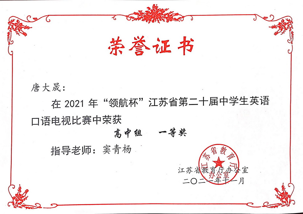 <P align=left><FONT size=4></FONT> <P align=left><FONT size=4> 10月30日,“领航杯”江苏省第二十届中学生英语口语电视比赛在江苏省电化教育馆如期举行,我校高二年级杨静萱、唐大晟两位同学喜获江苏省一等奖。</FONT> <P><FONT size=4></FONT></P> <P align=left><FONT size=4> 他们在舞台表现、即兴演讲等方面表现优异,体现了扬中学子的风采,在高中组决赛中获得评委老师的一致好评。</FONT> <P align=center><IMG alt="" hspace=0 src="$/History/main/Article/Uploadfiles/202112/20211218173835770.jpg" border=0></P> <P align=center><SPAN style="FONT-SIZE: 12pt; FONT-FAMILY: 宋体; mso-ascii-font-family: 'Times New Roman'; mso-hansi-font-family: 'Times New Roman'; mso-font-kerning: 1.0pt; mso-bidi-font-family: 'Times New Roman'; mso-ansi-language: EN-US; mso-fareast-language: ZH-CN; mso-bidi-language: AR-SA">右为杨静萱,左为唐大晟</SPAN><BR><BR><IMG alt="" hspace=0 src="$/History/main/Article/Uploadfiles/202112/20211218173835696.jpg" border=0><BR><BR><IMG alt="" hspace=0 src="$/History/main/Article/Uploadfiles/202112/20211218173835498.jpg" border=0><BR><BR></P>