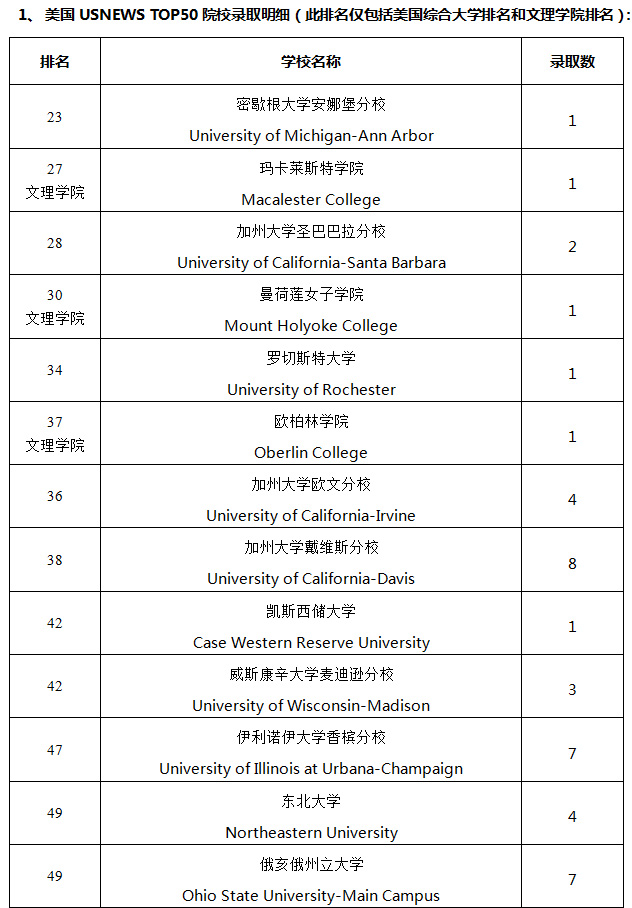 传统的美国申请中,则继续往年的辉煌,申请的同学中前50强名校录取率56%,前100强名校录取率100%,可圈可点。
