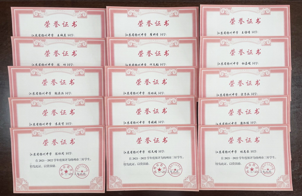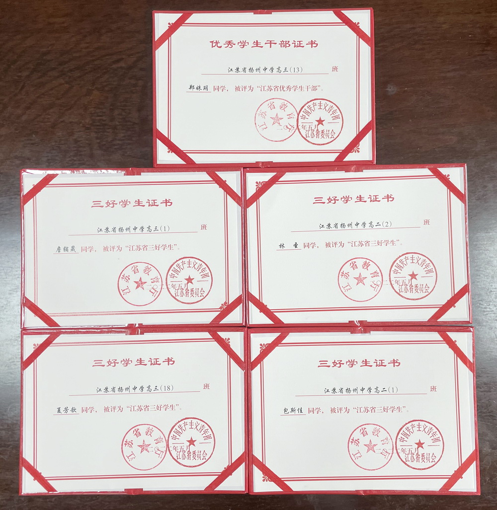 另外我校多名学生获得扬州市市级三好学生和市级优秀学生干部。
