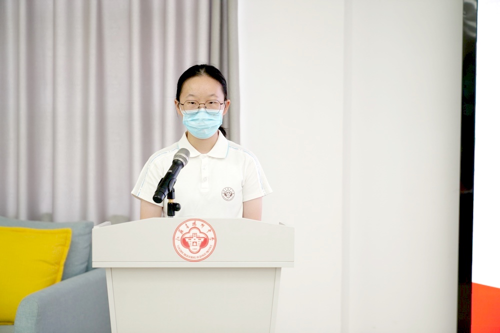 扬州中学优秀毕业生代表、南京师范大学新生代表成欣宇同学发言,表达了对母校栽培的感谢、对扬中生活的怀念和对进入南京师范大学求学的激动,号召同学们不负母校的嘱托,不负南京师范大学的期盼,成为不负时代的“南师人” 。