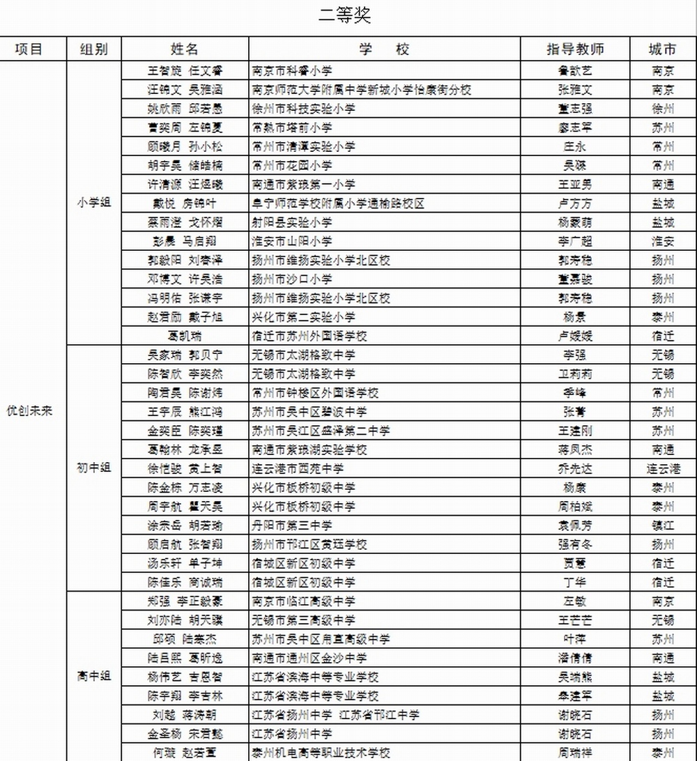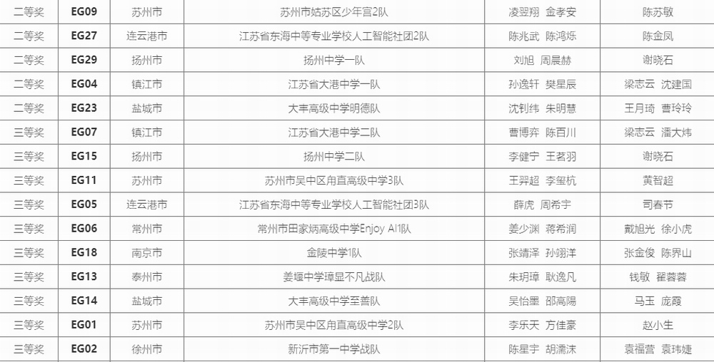 我校刘旭、周晨赫组成的扬州中学一队和李健宁、王茗羽组成的扬州中学二队在ENJOY AI挑战赛中沉着冷静,积极拼搏均以小组第一名的身份出线,最终分获该项目的二、三等奖。