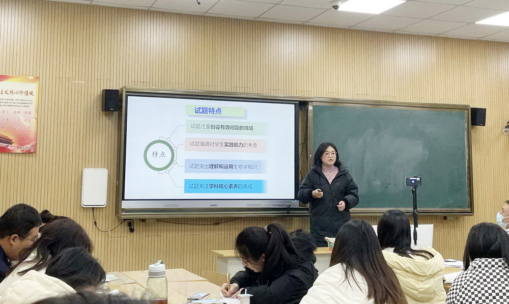 随后,胡有红老师开设题为《2023年高考试题“生物技术与工程”典型例题分析》的讲座。胡老师从2023年及历年江苏省高考生物卷相关试题分析、科研文献分析和在日常教学中如何充分利用好高考试题等方面进行了阐释。同时,胡老师还结合自己的教学经验和实际案例,生动形象地解释了科学技术的原理和应用,鼓励教师在教学中注重理论与实践相结合,培养学生的创新意识和实践能力。