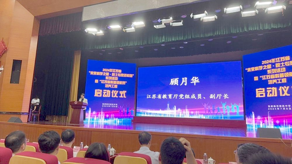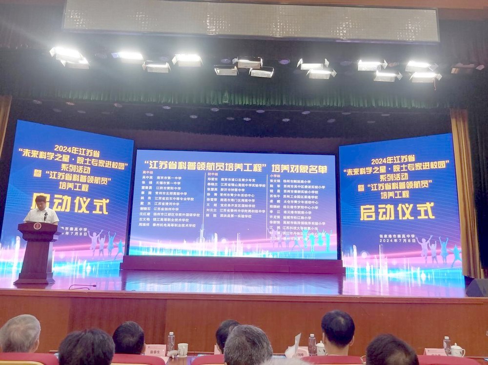 2024年7月8日,江苏省科技教育协会在张家港崇真中学举行了“江苏省科普领航员”培养工程启动仪式。启动仪式隆重热烈,省教育厅党组成员、副厅长顾月华女士出席并发表了讲话。顾月华副厅长在发言中指出,科普教育是青少年综合素质培养的重要组成部分,也是提升全民科学素养的关键环节。她希望入选的科普领航员们能够充分发挥带动作用,积极推动科技教育在全省的普及和发展。