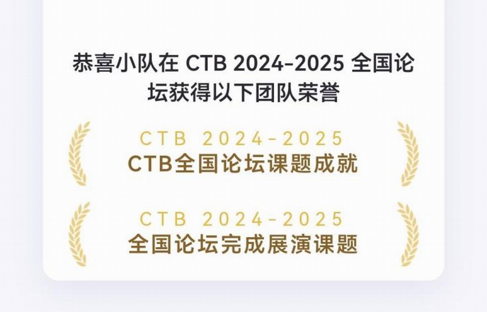 江苏省扬州中学CTB社团凭借卓越的组织力、创新力,从全国各地中学社团中脱颖而出,一举斩获“CTB认证社团”与“新锐社团”双项荣誉,标志着扬州中学在学术实践与青年领导力培养领域的全面领跑。在社长杨家栋的带领下,参赛同学用严谨的学术研究解决真实问题,用开放的协作生态打破校际壁垒,这正是扬州中学青年学子风采的展现,也是扬州中学五育并举、融合育人的突出成果。
