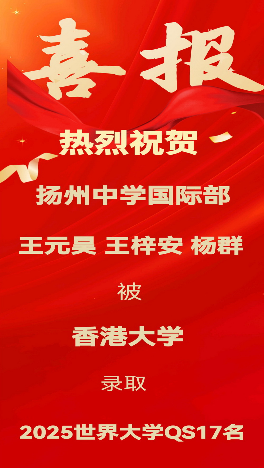 喜报 | 扬州中学高三国际班3名同学被香港大学录取