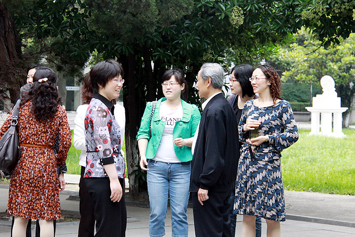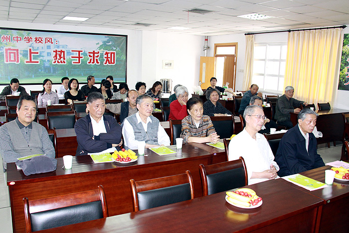 退休教师们身体硬朗,精神矍铄。往日的老同事、老朋友欢聚一起,畅叙旧情,谈论现在,其乐融融。在树人堂前合影留念之后,新老教师在综合楼五楼会议室进行了真诚而愉快的交流。语文教研组组长孙国强老师主持了联谊会。他首先介绍了语文组的发展情况,他说,近年来,语文组在新课程实施上形成了自己的个性特点,发挥了重点中学的示范辐射作用,教科研成绩突出,在职教师年龄结构合理,形成了相互交流、相互促进的组合优势,离退休老教师是我们的榜样,是用之不竭的教育资源和精神财富,欢迎大家“常回家看看”。