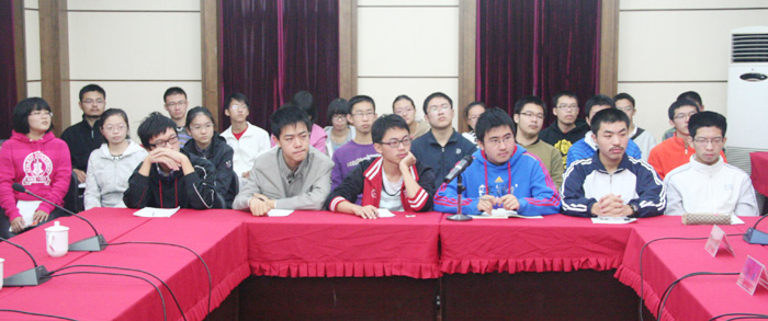 随后,学生代表就中学校长实名推荐制中的孝敬父母标准、精英教育与草根的关系、如何面对挫折等问题与许院士互动交流。许院士耐心细致地回答了同学们的问题。与会学生还就北大的招生模式等问题与北大招办江苏地区负责人进行了对话。许院士在座谈会上侃侃而谈、娓娓道来,既是一位平易近人、可亲可爱的长者,也是一位见解独到、思考深刻的智者,一个半小时的座谈会为扬中学子提供了一个心灵净化、思想升华的宝贵机会,扬中学子用最热烈的掌声表达了对许院士最诚挚的谢意。会后学生代表与许院士亲切合影留恋。