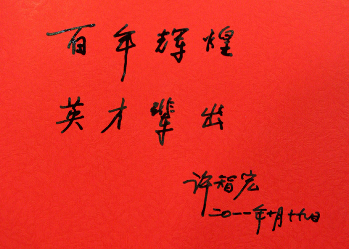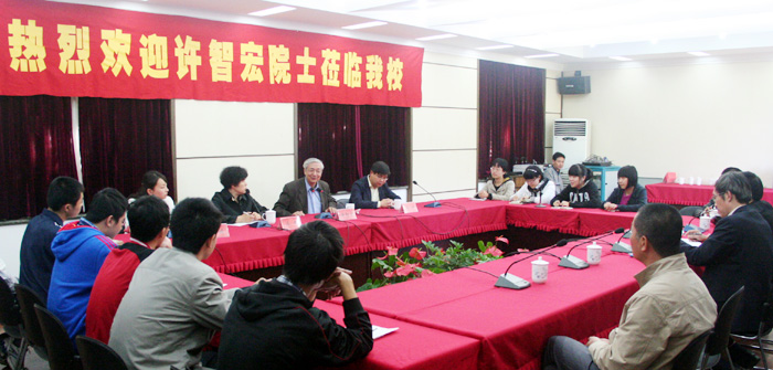 2011年10月19日,中国科学院院士、北京大学原校长许智宏院士一行莅临我校参观指导。许院士在卫刚校长、张发祥书记的陪同下饶有兴致地参观了树人堂校史馆和校园,随后在花园会议室与高二、高三学生代表举行了座谈会,并与学生进行了热烈的互动。