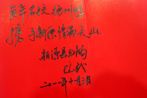 新疆新源县教育代表团还参观了校史陈列室,对我校悠久的历史、独特的办学思想和辉煌的办学成绩表示了由衷的称赞。