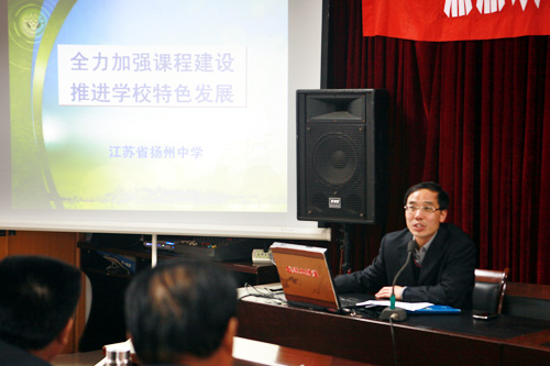 在综合楼五楼北会议室,赵浩岭副校长以《全力加强课程建设 推进学校特色发展》为主题,向考察团一行重点介绍了我校初步构建的体现科学与人文相融合办学特色的学校课程体系,即规定性课程、拓展性课程和自主性课程,同时介绍了我校具体实施这三类课程注重坚持的“四个原则”,即结构性原则、生成性原则、参与性原则和差异性原则,获得了考察团的较好评价,他们纷纷表示希望与我校加强合作,从而进一步推进学校课程改革,培育学校的发展特色。