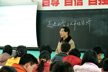 课改课堂教学展示和观摩拉开了此次交流活动的序幕。四个学校各派两位教师开设研讨课,在此基础上对新课程背景下的课堂教学进行研讨。依照常州中学的统一安排,我校高一年级物理教师冯兰、政治教师赵浩岭开设了研讨课,受到好评。