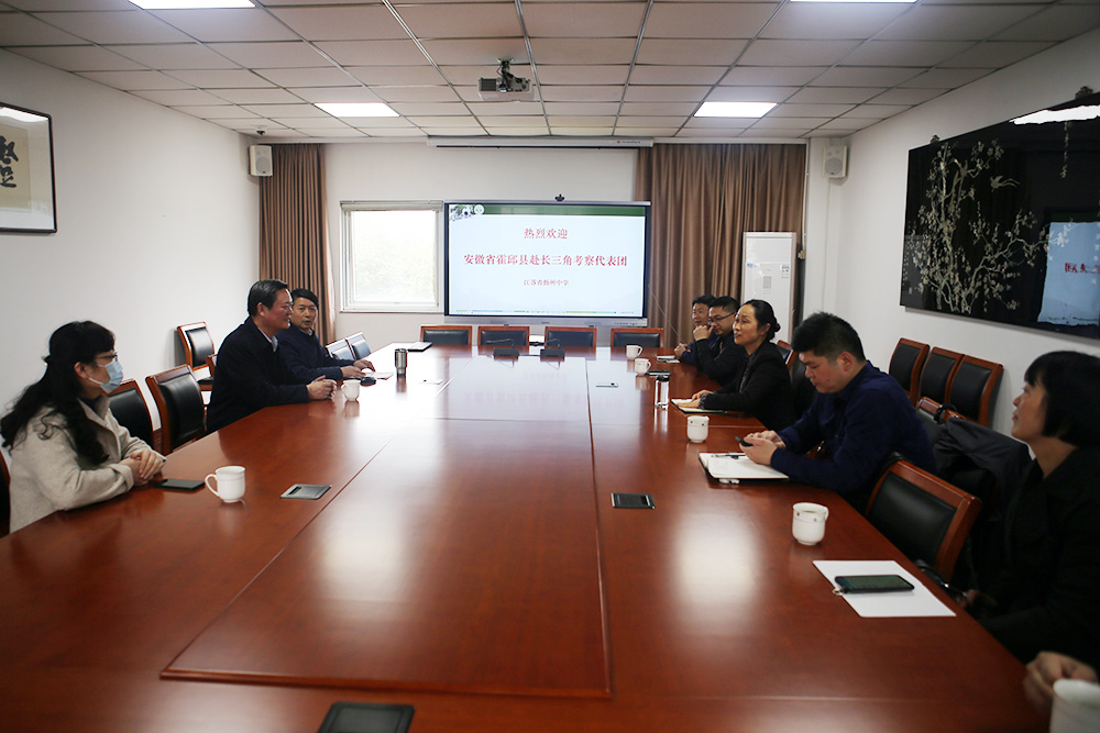 座谈会上,徐丽副主席介绍了霍邱县的教育发展现状,以及全县推进优质均衡教育的具体举措。陆建军书记与客人分享了扬州中学的历史沿革、办学理念、改革创新以及高品质示范高中建设等方面的情况。朱如忠副校长进行了“百年扬中,书香校园”的主题介绍,语文老师贾媛介绍了省语文课程基地阅读工程开展情况,心理老师谢晖介绍了学生发展中心对学生生涯规划的指导情况,双方还就如何提升教学质态、打造教师队伍、创新课程开发与建设、校园精细化管理等方面进行了深入务实的交流。双方均表示要进一步深化交流互访,相互学习,共同提高。