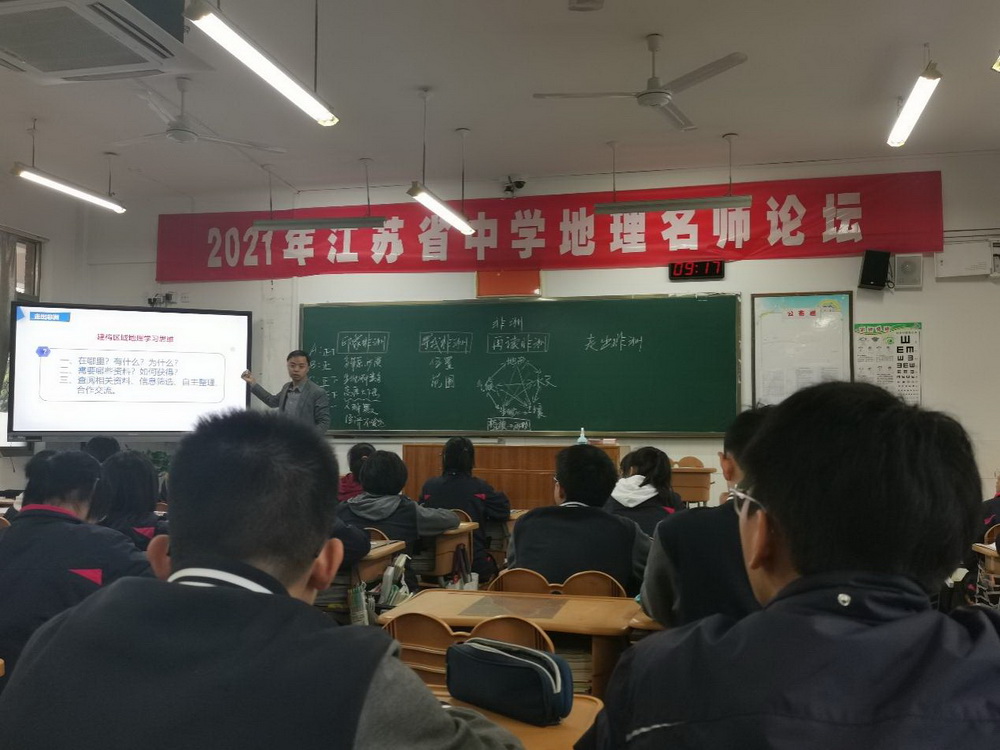 陈健老师为江苏省淮阴中学高二(1)班的学生开设了题为《非洲》的观摩课,评课教师认为本节课课件制作精美,教学内容以情境和问题为抓手,引导学生分层思考。能够以知识学习为主线、学法指导为辅线、教师引导为暗线,让学生的思维品质有所提升,对其他地区的地理教学有很好的示范意义。 陈桂珍教授作为此次论坛的评课专家,从学生学习、教师教学、课程性质、课堂文化四大维度维度出发,对第一组和第二组的三节公开课进行了详细的点评。陈教授肯定了小组合作学习、启发式教学的成功做法,并提出教学建议,希望在教学中关注课堂生成,让学生掌握分析问题的方法等等此次活动,深度研讨了如何引导教师深刻理解新课程及核心素养的内涵和要求,就新高考背景下如何实施高效的课堂教学进行了区域教研,加强了我校与省内其他学校的交流与联系。