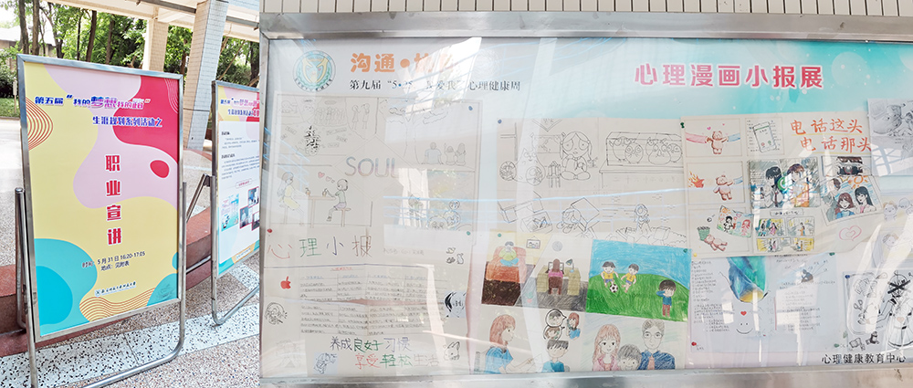 心理组由南师附中的冷老师带领参观,与冷老师交流了学校心理课程开设情况、课程主题、学生反馈等。课堂是老师与学生互动的主要场所,心理课不同于其他课程,体验性更强,学生在活动中有所感悟和收获。心理辅导和心理健康活动也是心理老师的重要工作,我校丁雨朦老师与冷老师交流了相关工作安排,成功的做法为双方更好开展工作提供了借鉴。此外,参观了学校今年的心理周活动,“心理漫画小报展”。生涯规划是学校心理工作的另一主体领域。当天下午正好有职业宣讲活动,冷老师带领大家参观了活动宣传展板和相关物品。学校邀请多位各行业优秀的家长和校友代表加入职业宣讲团队,家校联动提升学生生涯规划意识。
