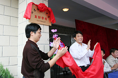 高邮市人民政府钱富强副市长对两校结为友好学校发表了热情洋溢的讲话。庆典仪式由高邮市临泽中学黎有忠书记主持。我校赵达平、卫刚、朱如忠三位副校长和蒋念组、张福俭、冯小秋、王雄四位特级教师及相关人员参加了庆典仪式。
