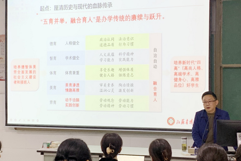 作为江苏省首批高品质示范高中,多个代表团来我校参观交流,相互学习,相互促进。我校介绍悠久的办学历史、新时代“五育并举,融合育人”的办学主张以及高品质示范高中创建的经验和做法,充分发挥了我校的示范引领作用和辐射效应。