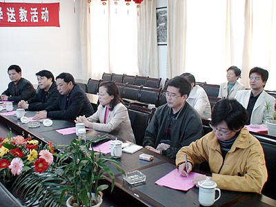 本次送教活动,我校高一年级的严长春、徐勤红、戚有健三位教师开设了新课程改革的示范观摩课,节节课都有自己的特色,既展示了老师们各自的教学风采,充分体现了新课程的教育理念,又在教学中努力实现了知识、能力、情感的三维目标,带来了他们在新课程教学改革中探索与尝试的印迹。“从这些老师的交流课中,我看到了新课改的生命与活力,感受到了新课程的育人价值与创造特性,这些都将对我今后的课堂教学产生积极而深远的影响。” 临泽中学的一些青年教师喜不自禁地这样说。 就2007年的高考备考策略,我校董玉海校长、赵达平副校长、高潮、叶宁庆、丁爱军、姜卫东、杨亚娟等分别从各自任教的学科,结合我校的复习实际,并联系临泽中学的具体情况,与临泽中学的高三教师进行了广泛而深刻的交流,交流组还带去了我校下一阶段即将使用的复习资料。本次送教活动得到了高邮市教育局、高邮市临泽镇有关领导的关心和支持,民进扬州市委副主委、秘书长沈红云全程参加了活动。
