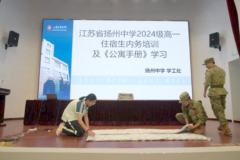 携手共筑文明公寓——江苏省扬州中学举行2024级高一住宿生内务培训