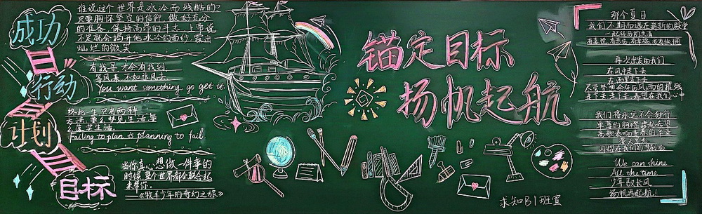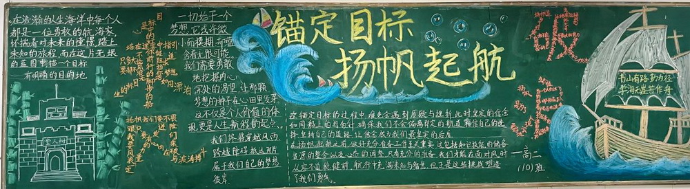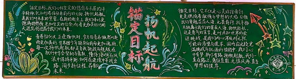 为营造高品位的校园文化氛围,充分发挥黑板报宣传阵地的教育功能,金秋九月,迎新蓄力,我校学工处、团委组织了以“锚定目标,扬帆起航”为主题的黑板报评比活动。