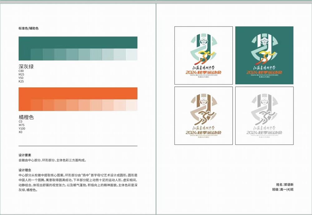 而郭语新同学为运动会秩序册设计了三种方案,巧妙地将运动元素与“Y Z”(扬中)相结合,设计色彩丰富、构图生动,让人眼前一亮,因此,她的作品同样获得了特等奖的认可,并将成为运动会秩序册的封面。