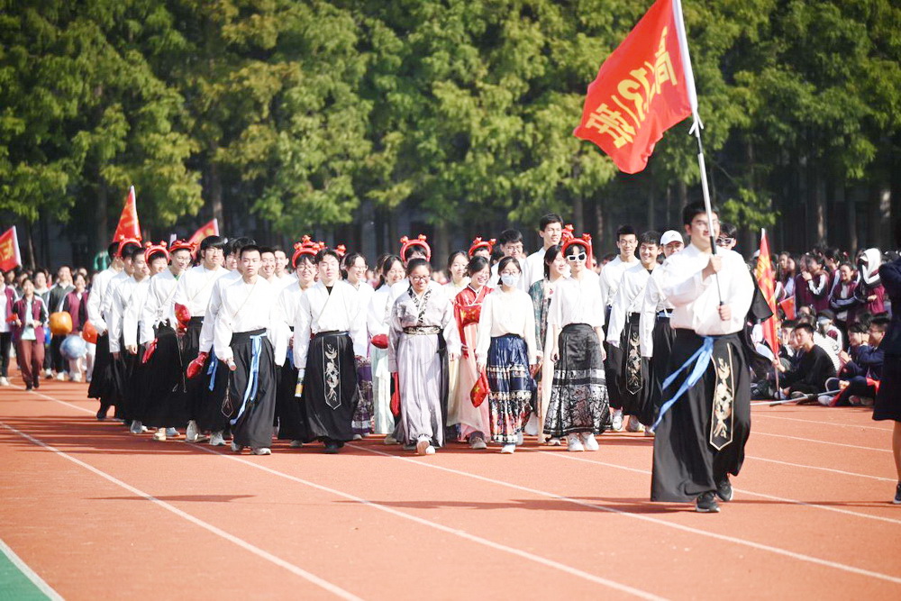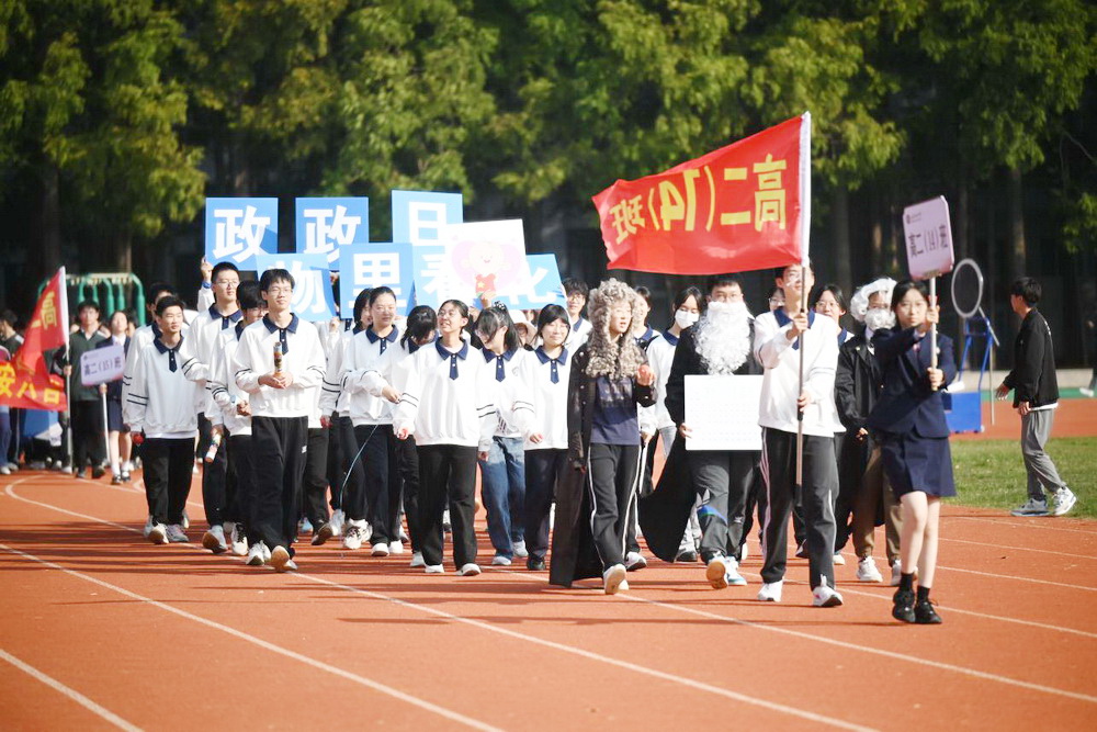 国旗方阵、校旗方阵、各个班级和教师方阵依次入场。他们步伐整齐,气势昂扬,展现出扬中人的青春与活力。