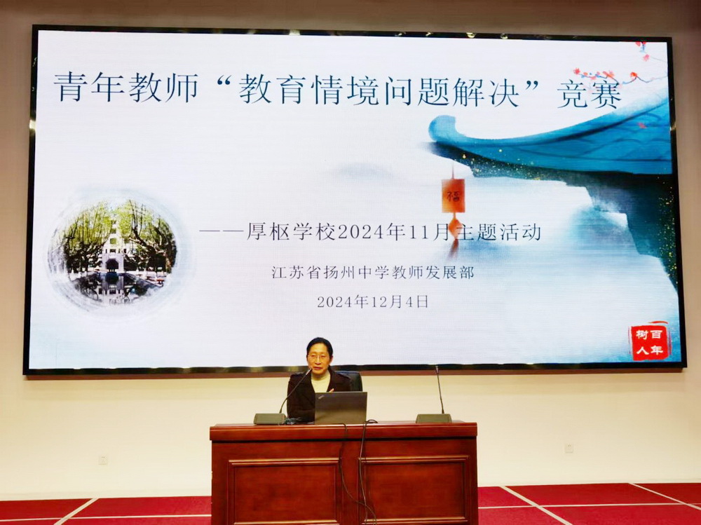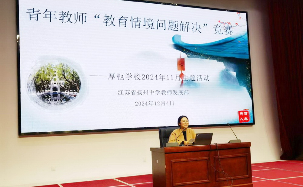 为增强青年教师对教育情境问题的认识和理解,提高青年教师解决实际教育教学问题的能力,我校厚枢学校于12月4日下午在藏修楼二楼报告厅开展了一场青年教师“教育情境问题解决”竞赛。活动由我校教师发展部副主任郭金花老师组织、策划,江苏省班主任基本功大赛一等奖、长三角地区班主任一等奖获得者何欢兰老师担任评委,刘金丽老师主持,全体厚枢学校青年教师参与。