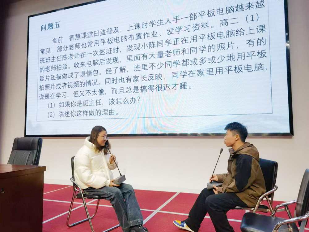 比赛开始时,电脑屏幕逐一呈现5个情境问题,参赛教师需在规定时间内提出解决方案并进行现场展示。