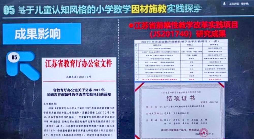 名师引航,解码成果培育路径。讲座伊始,荀步章老师结合自身多年扎根课堂、躬耕教研的实践经验,从“基于儿童认知风格的小学数学因材施教实践探索”这一获奖成果展开分享。他详细阐述了自己在教学成果培育各个阶段、多个方面的心得和体会,系统梳理了教学成果从萌芽到成熟的全过程。