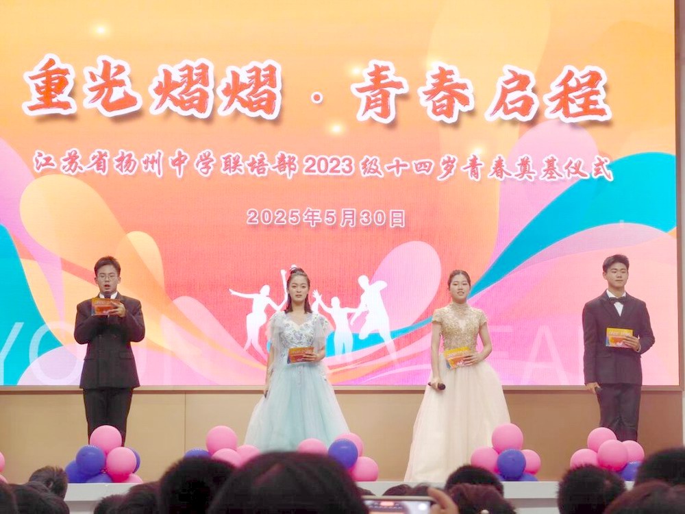 2025年5月30日下午,江苏省扬州中学的树人堂内洋溢着青春的气息与蓬勃的朝气,一场以“重光熠熠·青春启程”为主题的14岁青春奠基仪式在此盛大举行。学校领导、2023级全体师生及家长齐聚一堂,共同见证这一意义非凡的时刻,为同学们开启青春的崭新篇章。