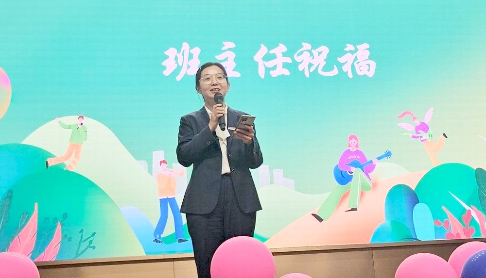 班主任朱敏和孟新力老师分别送上深情寄语。朱敏老师从语文的角度,将青春比作诗歌、小说、散文、戏剧,希望同学们用心感受、用爱书写属于自己的青春故事;孟新力老师将青春比作一束光,鼓励同学们永葆心中的光芒,坚定追光的步伐,成为照亮未来的时代之光。师长们的话语如同一盏盏明灯,为同学们照亮了青春的道路。