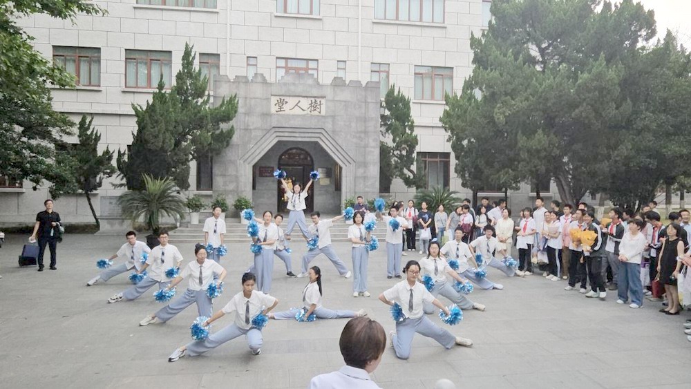 仪式最后全体同学和家长按班级顺序,在班主任的带领下,亲子携手共迈青春之门,并在青春打卡处合影留念,用相机定格这一难忘的瞬间,为这场青春盛典画上了圆满的句号。更让孩子们惊喜的是,当他们以为仪式全部结束时,却发现联培部学长英才D班的同学以一场青春韵律操在树人堂前的广场迎接他们……