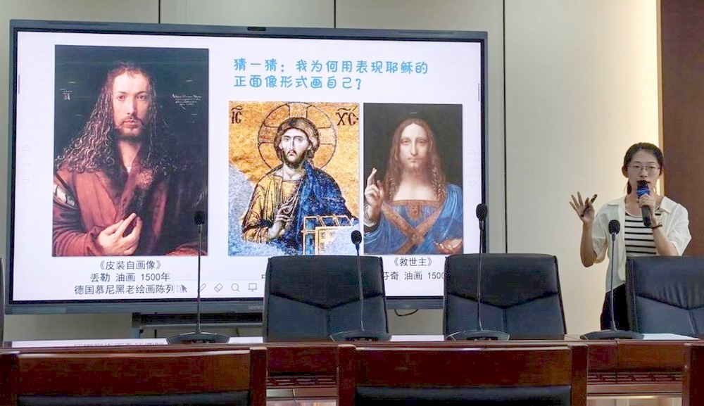 音乐组陈莹老师以《从传统到未来》为题,向大家讲述了现代音乐发展的三种路径,巧妙运用视听结合手段,营造沉浸式课堂。她引领学生探索音乐与数学、计算机技术的奇妙联结,展现了音乐学科的深度与广度。心理组丁雨朦老师的课堂聚焦“如何正确认识自我”,课堂设计充满互动性与体验感。从“我眼中的自己——一叶知己”的想象活动,到剖析自我认知来源与偏差,再通过情景剧模拟和短片启发,引导学生理解“悦纳自我”的积极理念,解决实际心理问题。美术组张晨老师创新采用小组展示形式,以《美术家眼中的自己》为主题,让学生化身讲解员,结合时代背景,深入剖析不同美术家的经历与作品,探讨他们在自画像中的自我表现,揭示其艺术作品背后的社会角色与身份认同。信息组孙佳晶老师以“设计一双公筷”为主题展开任务导向型教学。课堂从分析“筷子为何这样设计”入手,引导学生多视角思考“人机关系”。通过小组讨论、创意作品展示乃至现场模型制作,将抽象的技术原理转化为生动的实践探索,有效激发创新思维。体育组蒋晨茜老师带来活力四射的拉拉操课堂,现场互动热烈,在精心设计的热身操后,进行了拉拉操基础动作教学,充分展现了体育学科的动感魅力与育人价值。