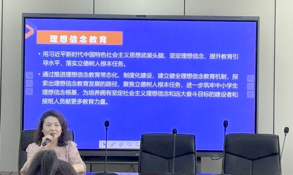在活动的最后,厚枢学校班主任郭金花老师跟青年教师们交流讨论了如何坚守教师的理想信念和践行教育家精神。青年教师作为教师队伍的新鲜力量,承担着传递教育火种的时代重任,呼吁青年教师用教育家精神培养自身坚定的理想信念、高尚的师德师风、扎实的专业素养和深厚的仁爱之心。
