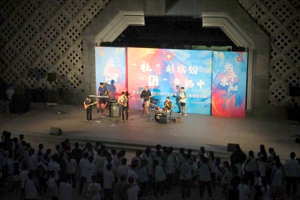 中心舞台绝对是当天最吸睛的 “高光地带”!S.O.Y 街舞社的成员们踩着鼓点登场,利落的动作、炸裂的节奏瞬间点燃全场,每一个转身、每一次跳跃都藏着少年人的热血与张扬;马列社带来《国际歌》合唱,熟悉的旋律在校园里回荡,铿锵有力的合唱里,是青年学子对理想的坚定回响;轻音社的两支乐队弹着吉他、敲着键盘,氛围感拉满,台下跟着轻轻哼唱的身影,都是同频共振的证明;摘星音乐剧社更带来了片段式表演,婉转的歌声、投入的演绎,仿佛把小型剧场搬进了校园,让人忍不住为这份热爱鼓掌欢呼。