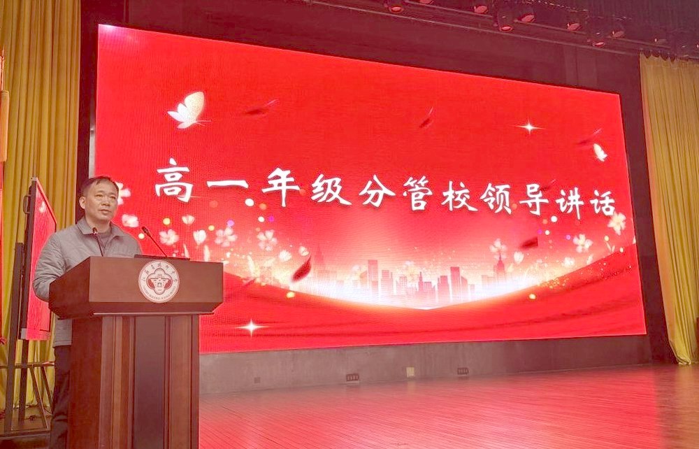 随后,王辉林书记讲话。他以“致敬”“镜子”“征程”三个关键词展开讲话,充分肯定了高一年级同学精益求精、反复打磨的优秀品质,高度评价了同学们不甘落后、敢于争先的无畏勇气。同时围绕集会纪律提出具体要求,强调纪律之于尊重、效率之与集体荣誉的重要意义,希望高一年级成为一支有纪律、有素养、有精神的队伍。最后,王辉林书记对比学校教育与家庭教育的不同定位,呼吁学子做好两者间的智慧连接,在双份滋养中成长。既要做一个积极、专注的求知者,也要成为一个懂得感恩、愿意分担的家庭成员。