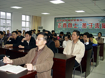 王淦教授用大量的数据充分论证了构建社会主义和谐社会、构建和谐扬州的迫切性,报告深入浅出,形象生动,赢得了与会者阵阵热烈的掌声。