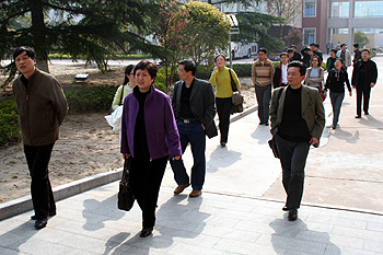 在海安中学,吕校长详细介绍了该校的办学情况及办学业绩。海安中学有一支精诚团结、敬岗爱业的教师队伍,每位教师将自己的发展始终与学校的发展紧密联系在一起,以为学校争得荣誉作为自己的荣誉。学校也不惜资金,为教师的发展提供平台,每年选送6—8人攻读研究生,3—5人到国外进修,并形成了一整套管理制度。在学生管理方面极为精细,学校严格规定学生的作息时间;在思想教育方面,强化“读书改变命运、刻苦成就学业、态度决定一切”的观点;在教学方面,进行分层次教学,根据学习成绩,分成竞赛班、强化班、普通班和基础班,并实行滚动制。董校长表示,海安中学在教育教学管理方面确实有许多东西值得我们学习,扬州中学有着自身的特殊性,我们将在借鉴海安中学办学经验的基础上,结合学校的特点,努力探索一条适应新形势的教育教学管理之路。