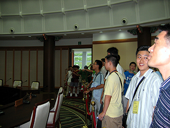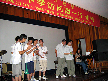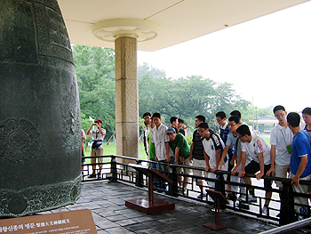 访问团一行在韩期间受到了主人的热情接待,岭南高中朴盛圭校长主持了隆重的欢迎仪式,精心安排了在韩期间的行程,活动主要包括:与岭南高中学生干部联欢、参观校园、海滨浴场竞技、赴釜山、庆州等地观光。本次交流活动的特色在与采取“HOMESTAY”的方式,中韩学生互相结对,入住对方家庭,这样可以全方位的感受异国的风土人情,深入交流看法,建立与对方家庭的友好关系。访问团一行虽然在韩国只度过了短短的四天,但普遍感受到了主人的热情、中韩两国人民之间的友好,在机场分别的时候,韩国学生操着刚刚学会的中文“兄弟”“再见”“保重”,与自己的伙伴拥抱作别,场面十分热烈、感人。