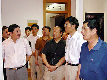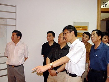 2006年7月20日上午,在扬州市教育局局长余如进、副局长穆光曙、周应华和局长助理王玉军的带领下,徐州市教育局局长强国、副局长李玉良等考察团一行冒着倾盆大雨视察了我校。