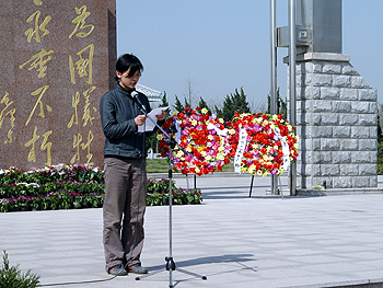2006年3月28日,我校高一年级省招班学生步行参加了市直学校祭扫烈士陵园的活动。到达陵园后,祭扫活动开始,全体师生庄严肃立,怀着无比崇敬的心情向革命烈士行三鞠躬礼。当沉重而肃穆的哀乐奏响的时候,全体师生行了默哀礼。哀乐结束,同学们向革命烈士敬献了挽联,学生代表宣读了《在祭扫烈士墓仪式上的讲话》。紧接着,同学们向烈士墓献花,最后,全体师生参观了革命烈士纪念馆。本次活动对增强学生的爱国主义情怀起到了积极的作用。学生们站在烈士墓前心潮起伏,思绪万千。他们表示要继承革命先烈的遗志,为家乡的建设、为祖国的繁荣富强而努力学习,共创美好明天!