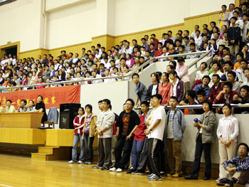 2006年5月初,我校高一年级的篮球赛和高二年级的排球赛正式拉开了序幕,本次比赛规模空前,依旧采取淘汰赛的方式进行,经过激烈的角逐,高一(8)班力挫群雄,一举夺得本次篮球赛的冠军。而高二(13)班则凭借绝对的优势以连续7个2:0的优异战绩勇夺冠军。在此次篮球赛和排球赛中,我们看到,许多同学自觉组织了拉拉队,激动地为本班队员呐喊加油。同学们优良的体育素质,和谐的团队精神,感人的集体荣誉感似乎编织成了一道独特的风景。或许,这一切的意义早已超越了比赛本身。高二(13)班的许淏同学抑制不住内心的激动和兴奋,为那些给班级争取冠军荣誉而奋力拼搏的球员们献诗一首。许多同学纷纷表示,这样的比赛非常有意义,即便他们是胜利的一方,他们也可以从对手身上学到很多东西。5月26日,这两项比赛圆满结束,此后,冠军队又与年级的明星联队进行了精彩的表演赛,学生会评选出了“最有价值球员”、“最有潜质球员”和“最佳人气王”。