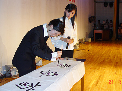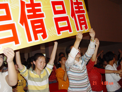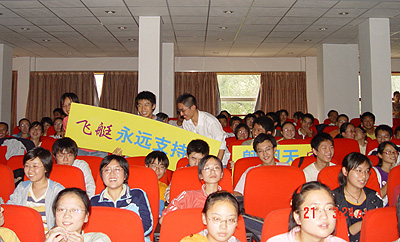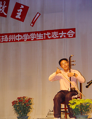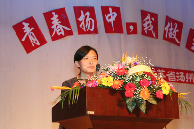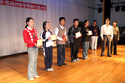 在上一届学生会主席张慧总结了工作、上一届学生会优秀成员获得褒奖之后,团委书记吴高扬宣布大会正式开始。首先是十七位候选人就六个部门的委员职务展开角逐。随着高二(9)班王妍同学的演讲《快乐学习,不难想象》,全场的气氛开始走向高潮。每位竞选同学在竞选演讲后必须面对一位评委老师的提问,其中内容从施政纲领到校园文化,从学生生活到国家大事,某些提问的角度相当“刁钻”。好在会者不难,台上的同学们通常是用机智而精彩的答案赢得在座同学和家长们的阵阵掌声。在演讲和提问之后,每个参选同学的才艺表演更是让全场观众大开眼界,赞叹不止。入木三分的书法、自信优美的歌声、急管繁弦的二胡和姿态曼妙的舞蹈都充分体现了扬州中学学生在课堂之外的广泛爱好和优秀素质。由学生代表和家长组成的亲友团在此更是不吝自己的掌声和喝彩!